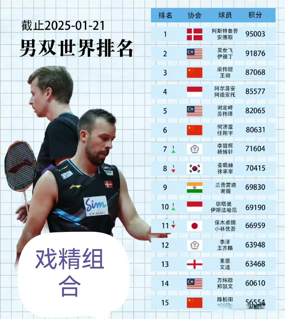 此外皮男人双打方面。丹麦的戏精组合阿斯特鲁普和安德斯排辞寰球的第一王昶和梁伟铿连接占据着寰球第三的位置。而何继婷与任翔宇排辞寰球的第六。另皮毛比靠前的中国球员当中陈柏阳和刘毅连接排在第十五。女子双打方面变化并不是很大,中国的谭宁和刘圣书排辞寰球的第二不外本赛季依旧是有很大的概率重新回到寰球第一的宝座,当中,贾一凡和陈黎明排辞寰球的第四。另外体育集锦,夹杂双打方面。寰球的前二依旧是由中国的两对组合占据。