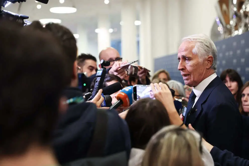 10月29日,米兰冬奥会组委会主席乔瓦尼·马拉戈在庆祝行径前接收媒体采访。新华社记者 李京 摄