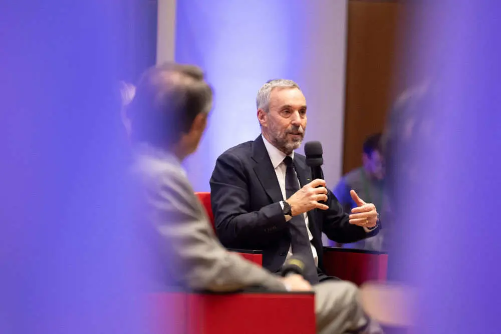 10月29日,介意大利米兰,米兰冬奥会组委会首席执行官安德烈亚·瓦尼尔在庆祝行径上发言。新华社记者 李京 摄