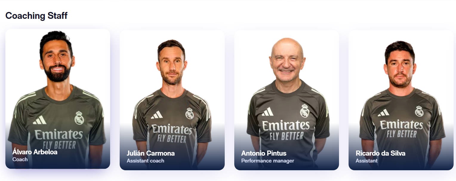 当地技巧1月13日,皇马官网更新了一线队素质组的无缺名单,其中阿韦洛亚担任球队的主素质体育录像/图片,平图斯回来并担任推崇素质,胡利安-卡蒙纳担任助理素质。