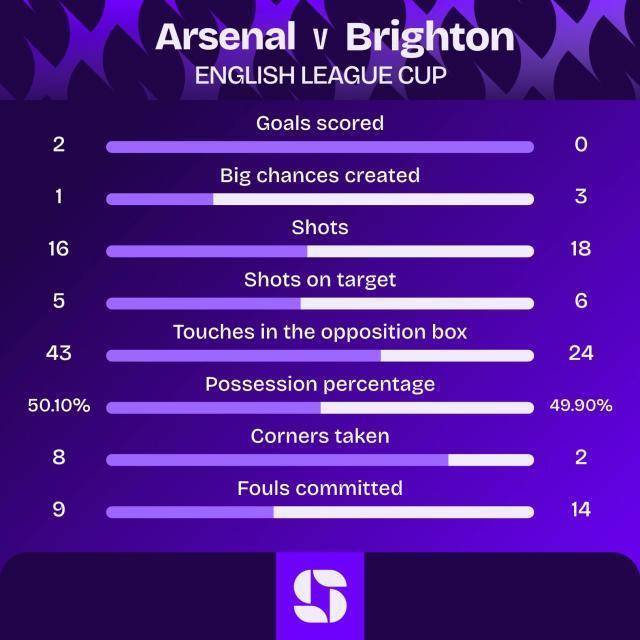 阿森纳首发:凯帕/本·怀特(70'于里恩·廷伯),克里斯蒂安·莫斯克拉,因卡皮耶(70'加布里埃尔·马加良斯),刘易斯-斯凯利/恩瓦内里,内尔高,梅里诺/说念曼(71'萨卡),哈里曼-安努斯(77'赖斯),埃泽(83'特罗萨尔)